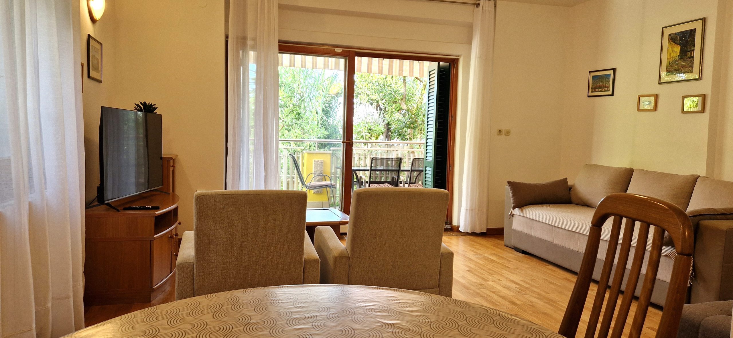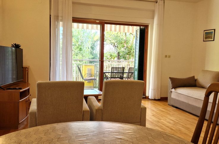 The apartment is located on the ground floor with a terrace and sea view.